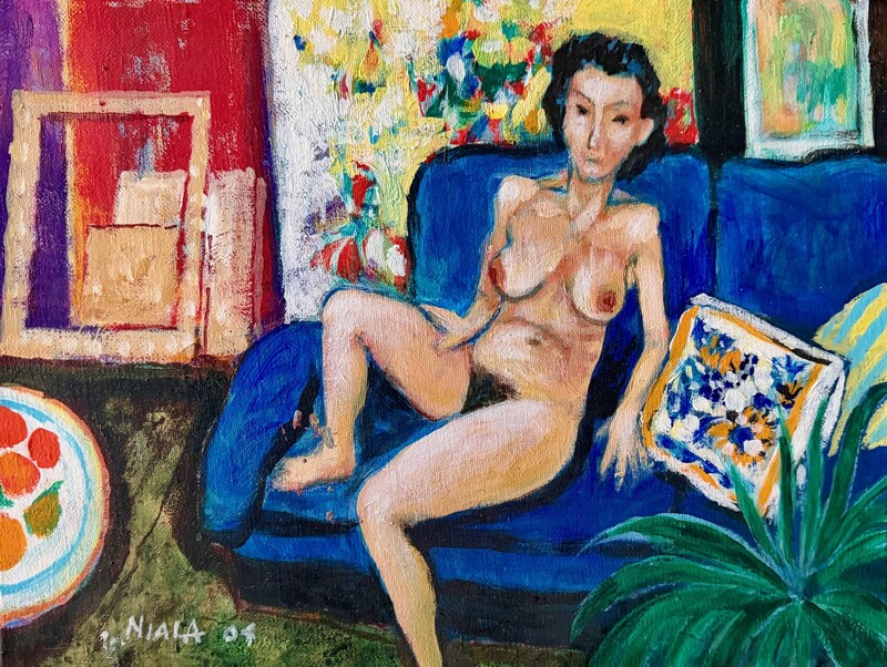 FEMME AU CANAPÉ BLEU