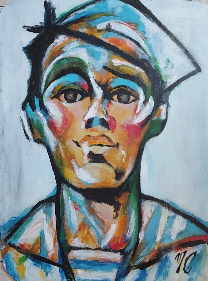 Peinture sur toile acrylique / Clown triste façon Van gogh